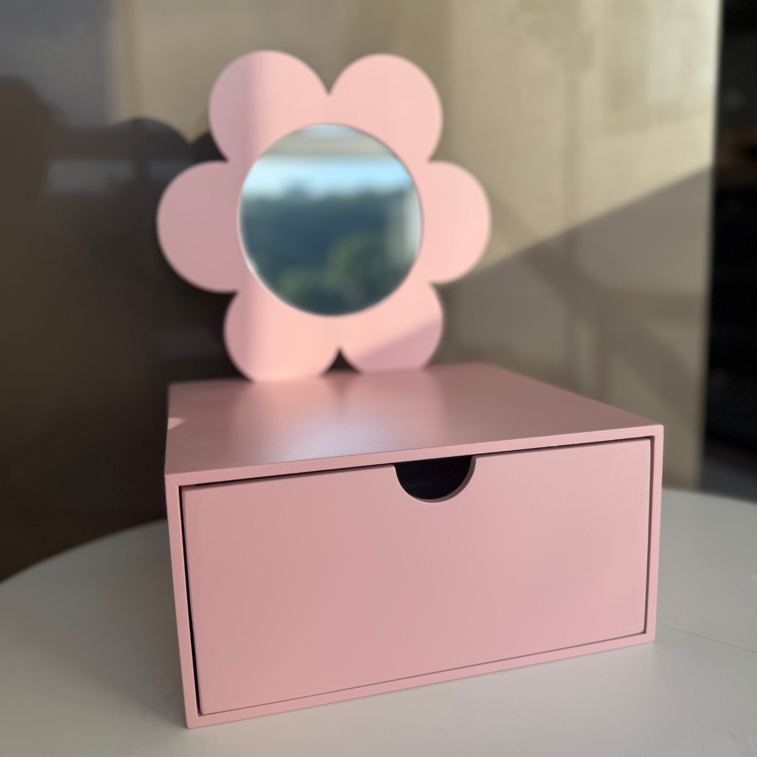 Transforme qualquer cantinho em um espaço mágico! Nossa penteadeira infantil compacta foi criada para encantar as crianças e trazer praticidade para o dia a dia. Com um delicado formato de flor e um charmoso espelho redondo, ela estimula a imaginação e o cuidado pessoal de forma divertida.