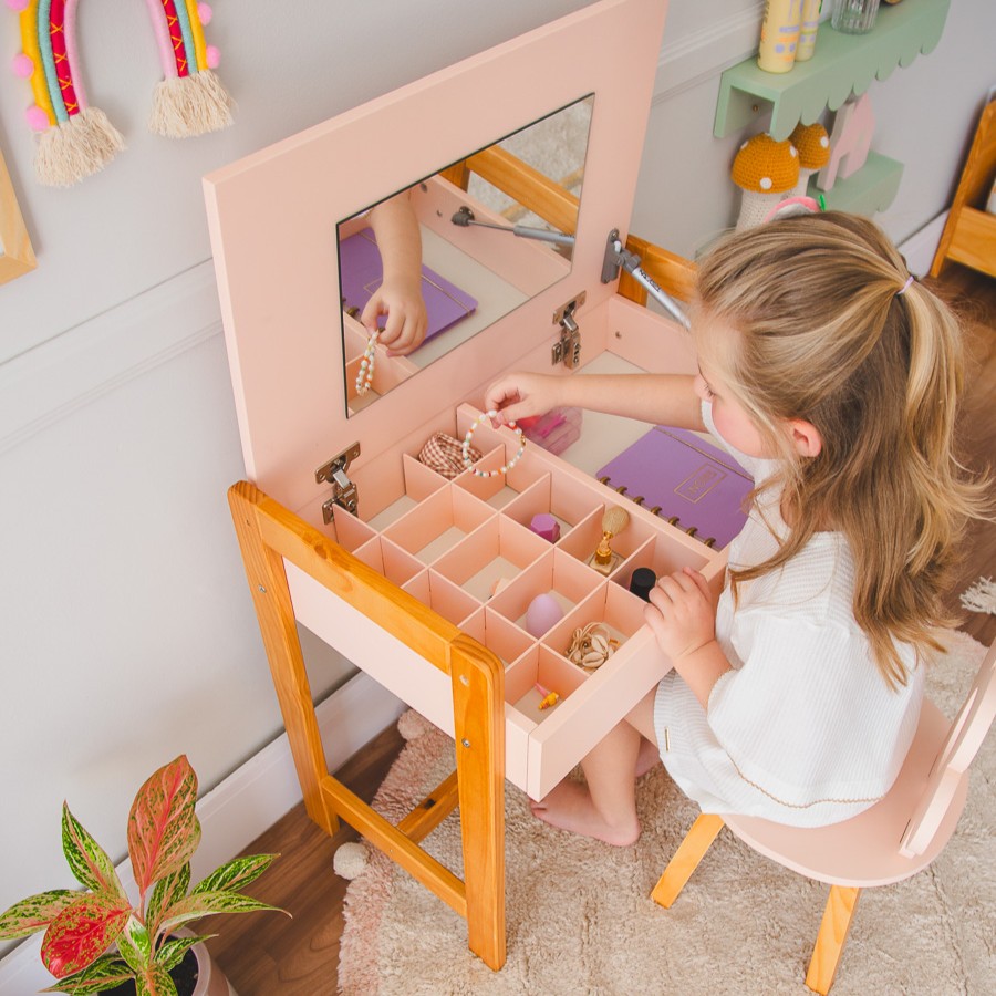 Perfeita para incentivar o autocuidado e a independência, a Penteadeira com Regulagem de Altura é mais do que um simples móvel – é um espaço onde as crianças podem explorar sua criatividade, desenvolver sua autoestima e se preparar para o dia com confiança.